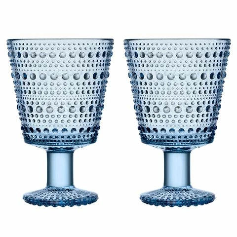 Entertain with Nordic cool with Kastehelmi Universal Stem Glasses, decorated with transparent bubbles that resemble dewdrops. (Kastehelmi refers to dew in Finnish). Playful, durable and versatile, each piece dances with light, releasing the reflective beauty of the glass.