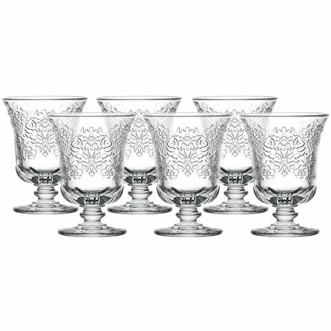 And they don’t come much prettier than the Amboise collection. Stemmed glasses embossed with an intricate, Venetian-inspired design lend themselves to any occasion and drink, and are made in France to a lovely Renaissance arabesque style.